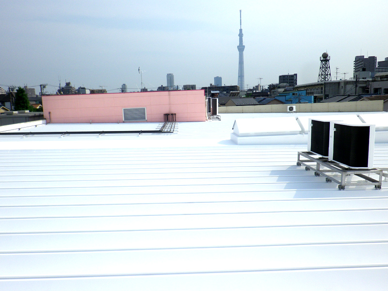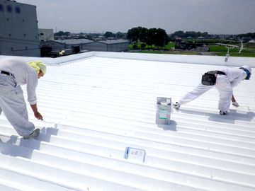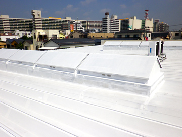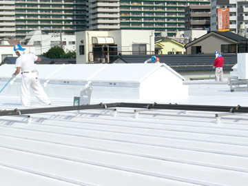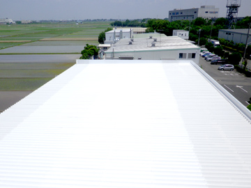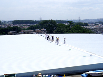 | 工場屋根の遮熱塗装の様子です。 | ||