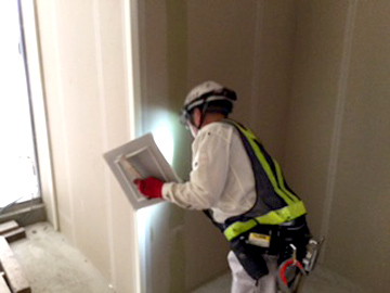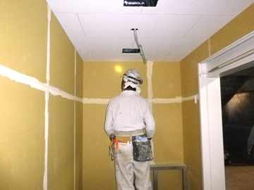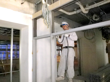 | こちらは埼玉県の某私立高校の七階建て新築工事です。新築工事の出来る町場のペンキ屋さんは、数少ないです。新築工事につきましても、ぜひご相談ください。 木部へも一つ一つ丁寧に塗装を行っております。勿論、お客様が普段目にすることのない、細部にも丁寧に塗装を致します。 |